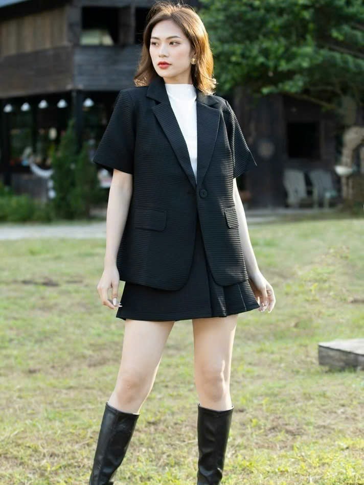 ღ THÔNG TIN SẢN PHẨM: Tên sản phẩm: Set áo váy vest đen ngắn tay Chất liệu: Chất gân ý Chi tiết sản phẩm: không lót, không túi Chiều dài Áo vest: Size