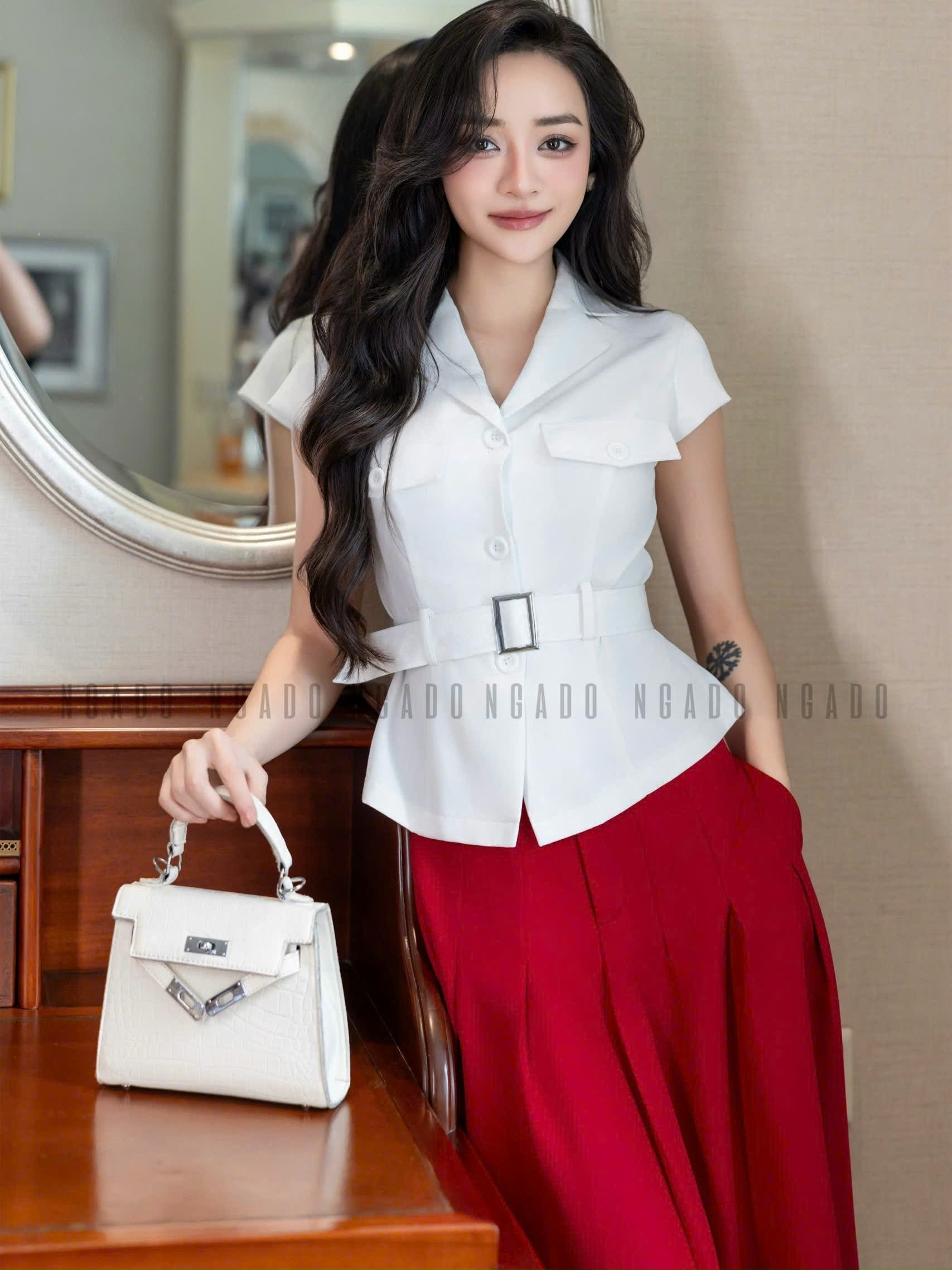✨Set áo váy vest trắng đỏ NGADO , set áo váy vest , set công sở