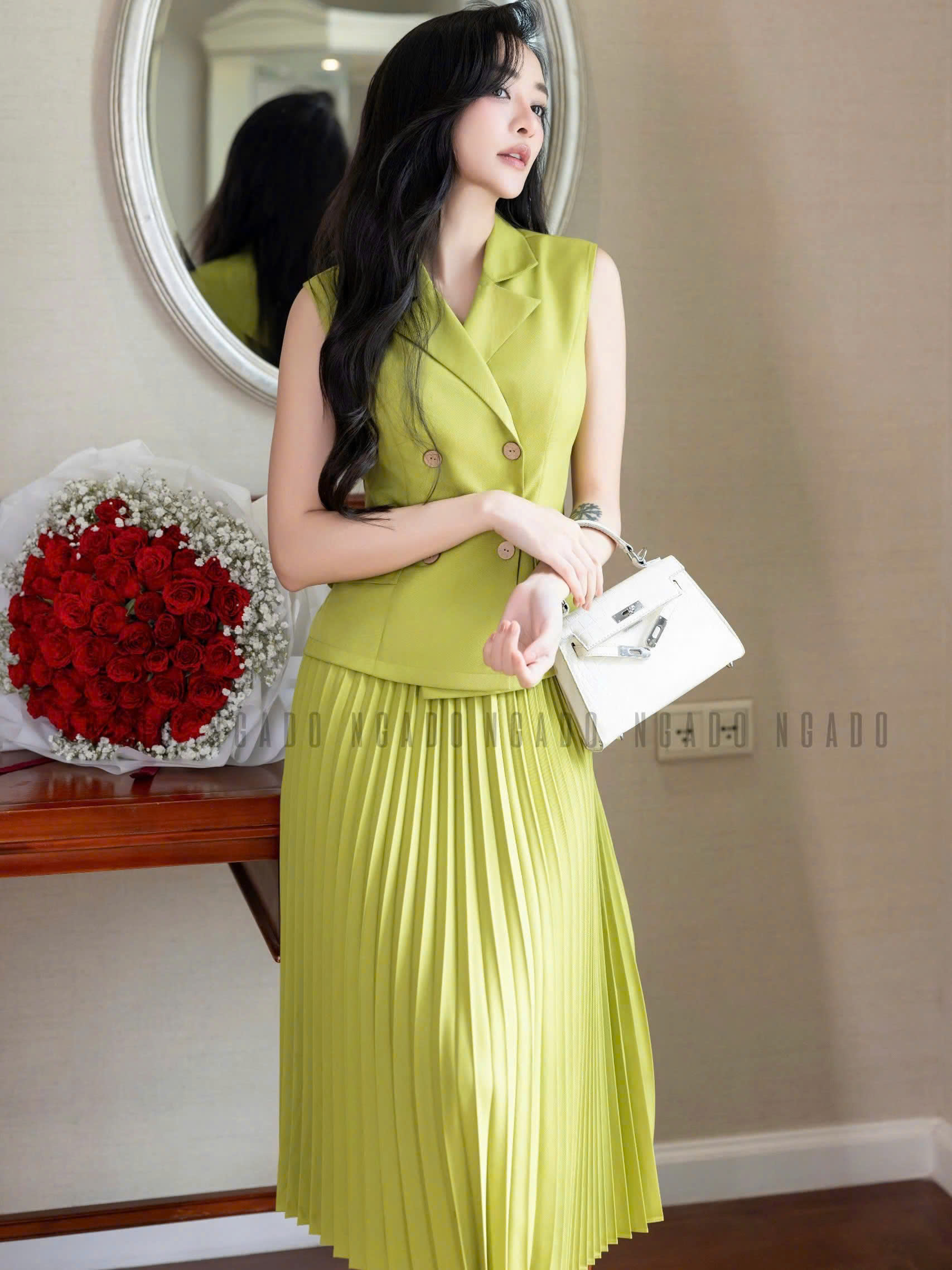 ✨Set áo váy xanh bơ xếp ly NGADO , set áo váy nữ , set công sở , dự tiệc