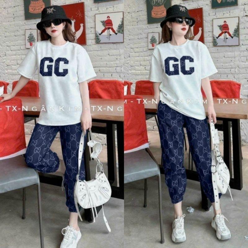 ✨Sét đồ bộ nữ bigsize form rộng thêu chữ GC, sét bộ đồ mặc ở nhà siêu xinh