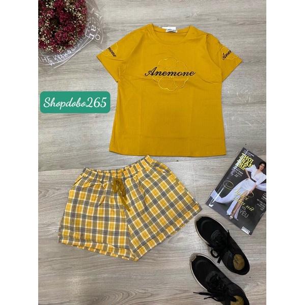 ✨Set đồ nữ, đồ ngủ mặc nhà đùi thun phối sọc kaki BN 04 họa tiết dễ thương.