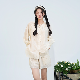 ✨Set đồ nữ thêu hoa gồm áo dài tay kèm quần short phong cách vintage Aster Miều Est.2013