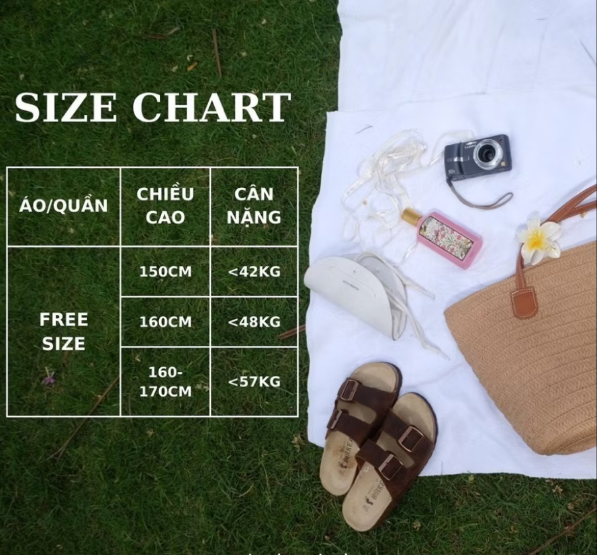 - Chất liệu: Vải thun cotton Hàn, mềm mại, co giãn tốt, thoáng mát, tạo cảm giác dễ chịu cho người mặc. - ÁO: Freesize + Kích thước: Xem bảng size chart + Form áo: