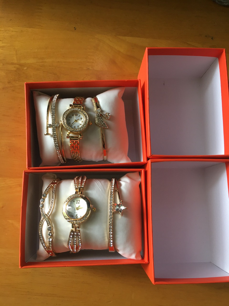_Combo hộp 3 món đeo tay xinh xắn phong cách thanh lịch thời trang sang trọng quý phái cho nữ -Combo hộp đồng hồ 3 món đeo tay xinh xắn , mặt tròn màu trơn