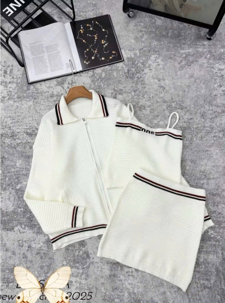 ✨Set Len 3 Món Áo Khoác Cardigan Khóa Kèm Áo 2 Dây Crotop Mix Chân Váy Ôm