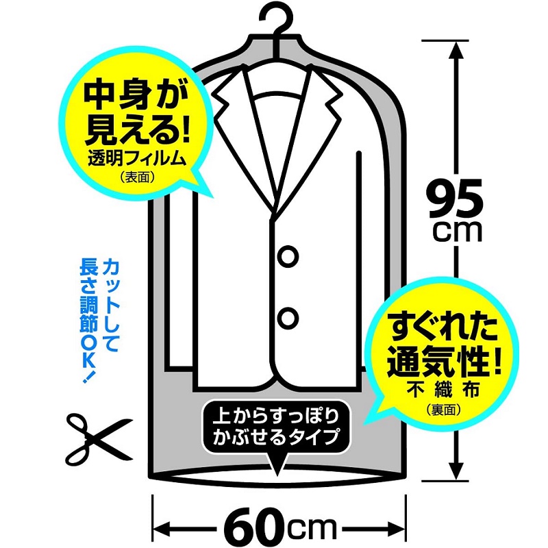 Set túi bọc quần áo treo tủ chống bụi, chống côn trùng Towa Sangyo ■ Xuất xứ: Nhật Bản | MADE IN JAPAN ■ Kích thước: 88000 | Kích thước :60 x 95 Hcm x 10 chiếc 88001