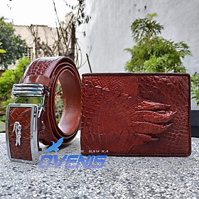 ✨Set Ví và Thắt Lưng Cá Sấu [VÍ BÀN TAY + NỊT DA HÔNG TRƠN] SET5