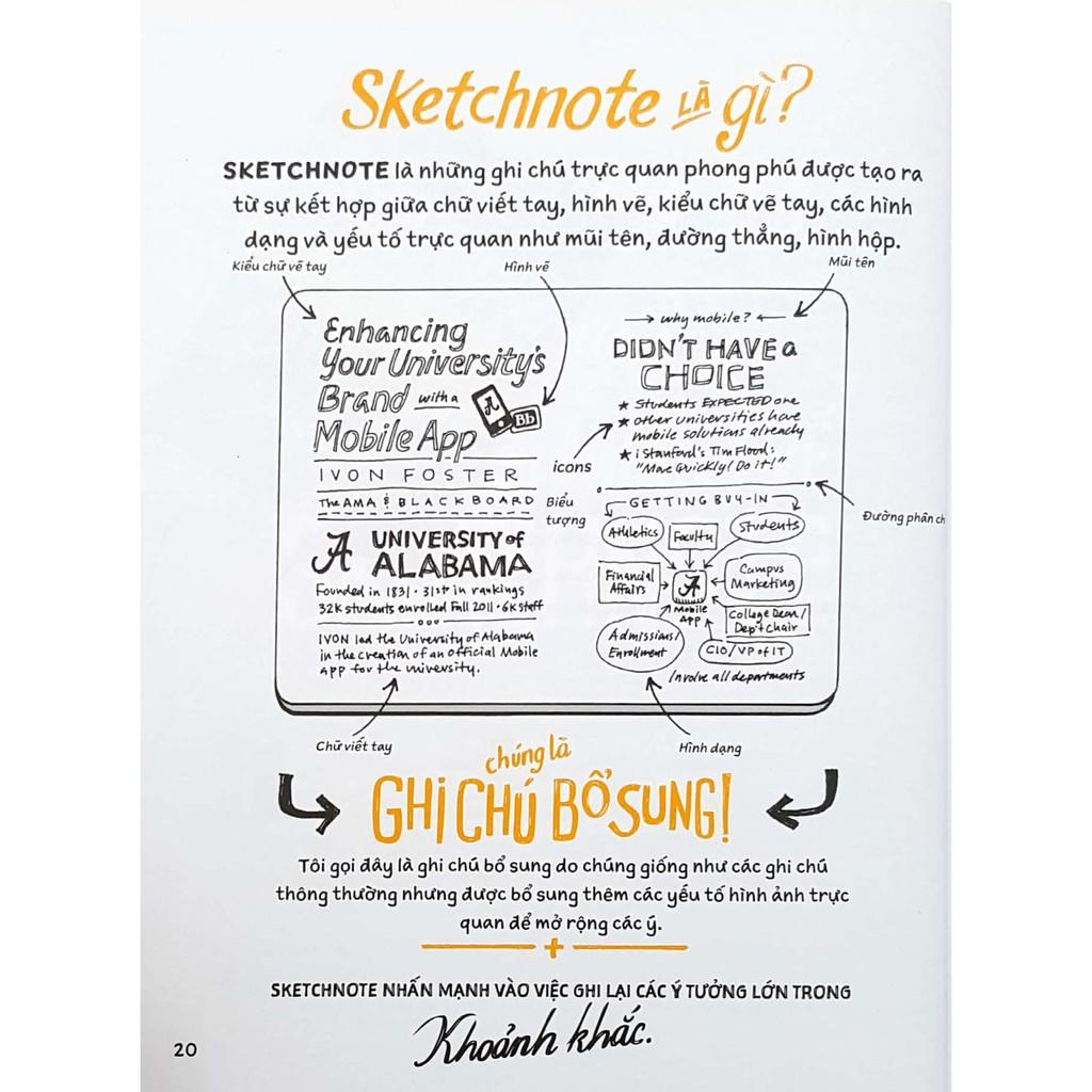 Trong phần đầu, tác giả Mike Rohde tóm tắt tổng quan nhanh về sketchnote. Sau đó, ông tiếp tục đưa ra cách hình thành và sắp xếp ý tưởng sketchnote một cách hiệu quả và nhanh chóng, đồng thời đưa ra các phương pháp áp dụng sketchnote vào các linh vực, hoạt động như sketchnote tài liệu, trải nghiệm, phim, chương trình truyền hình. Cuốn sách còn bao gồm các bài tập thực hành ở mỗi phần giúp độc giả có thể trực tiếp luyện tập kỹ năng sketchnote.