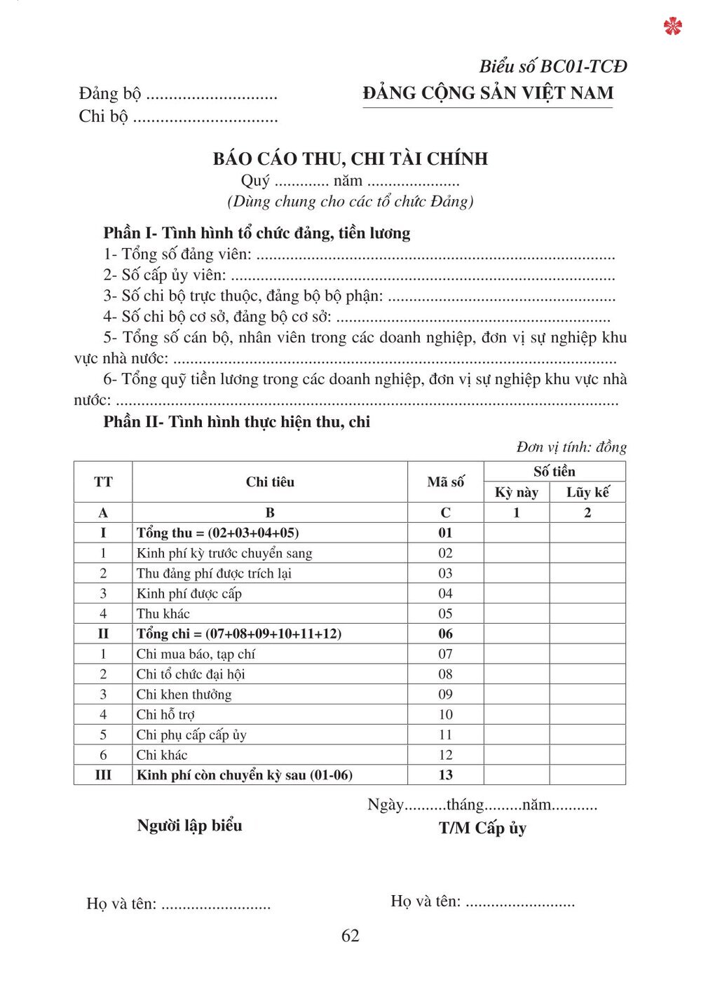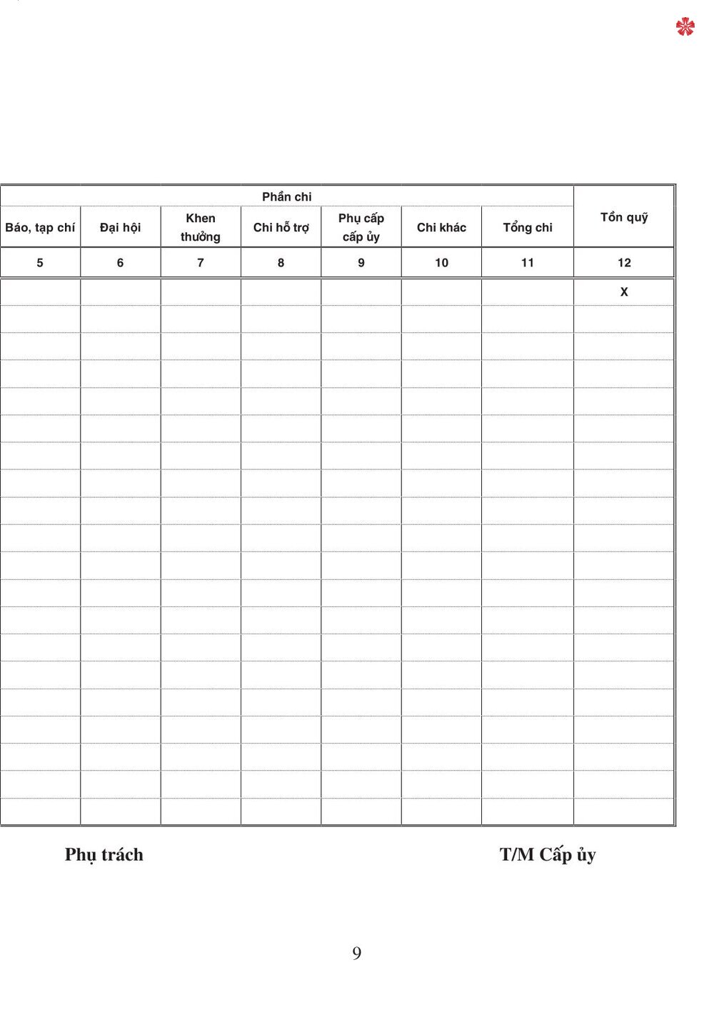 Sổ Chi Hoạt Động Công Tác Đảng Sổ thu, chi tài chính của tổ chức đảng các cấp dùng cho chi bộ cơ sở, đảng bộ cơ sở xã, phường, thị trấn; chi bộ cơ