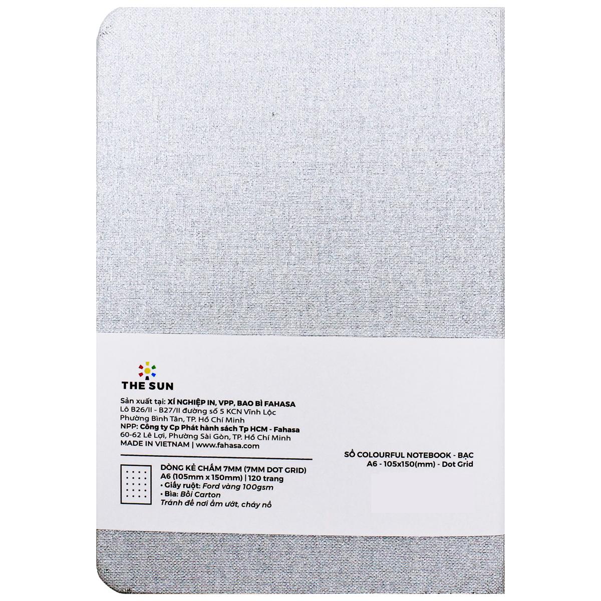 Sổ Colourful Notebook A6 - Dòng Kẻ Chấm - 120 Trang 100gsm - The Sun - Màu Bạc - Sở hữu kiểu dáng sang trọng với bìa trơn, chất liệu da mịn. - Sản phẩm