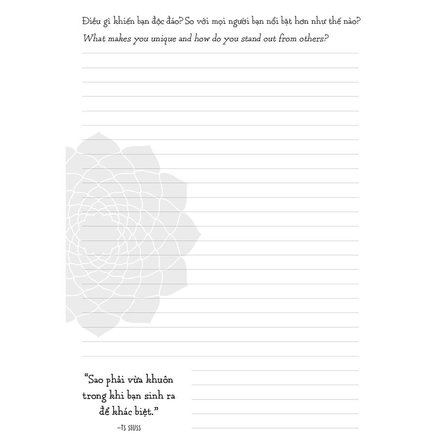 Giúp luyện viết hằng ngày Tiếng Việt: nâng cao kĩ năng viết dành cho học sinh, sinh viên, người làm content.. Tiếng Anh: tạo cơ hội rèn kĩ năng writing, làm quá trình học tiếng thú vị, giàu ý nghĩa.. Sau căng thẳng giờ làm, giờ học, dành chút thời gian để lắng lại, suy ngẫm thay vì cuốn vào giải trí để có được thái độ sống bình thản, có chiều sâu...