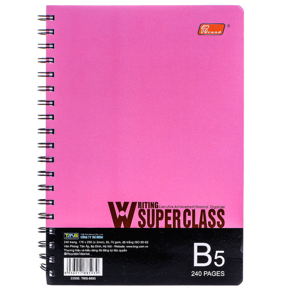 Sổ Lò Xo Grand B5 240 Trang Bìa Giấy thiết kế đơn giản, hiện đại và đẹp mắt. Form giấy cứng cáp, giữ sổ không bị gấp gãy, không nhăn nhàu. Chất liệu giấy cao cấp 70gsm với độ trắng 90-92 ISO, bề mặt giấy mịn màng, cho nét chữ trơn tru, mượt mà và rõ nét. Bạn có thể dùng sổ ghi chép những thông tin cần thiết, đặc biệt dễ dàng tháo rời từng tờ khi cần đến.