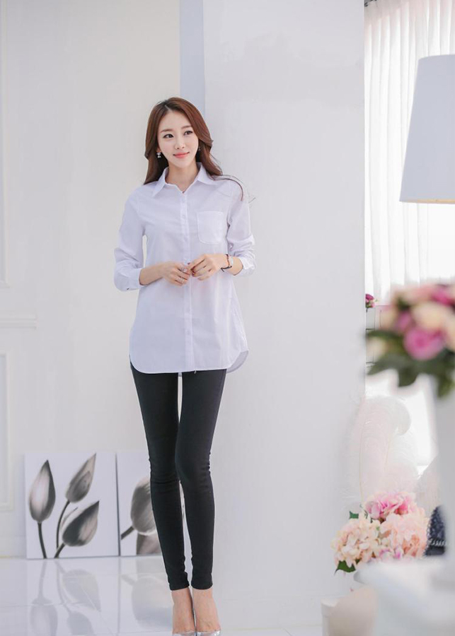 Áo Sơmi Dáng Dài - Chất liệu: Lụa Thô Hàn - Màu: Black, White - Size: S M + Số đo cho size S: Ngực 84-87(cm), dưới 52kg + Số đo cho size M: Ngực