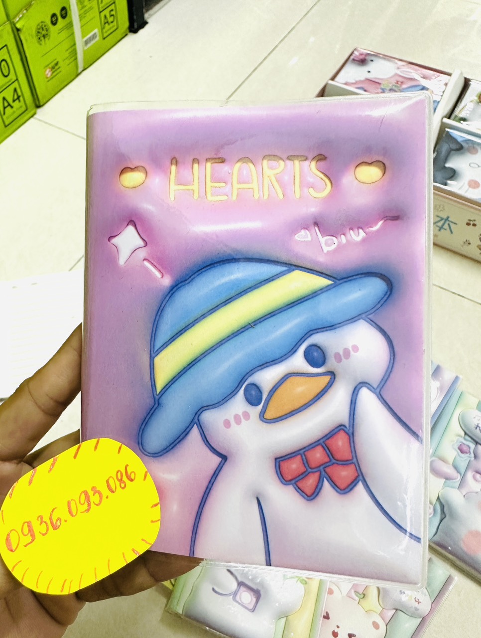 -Sổ tay thiết kế bìa dẻo trong bọc bên ngoài giúp hạn chế thấm nước và dễ lau chù -Sổ tay có 140 trang thiết kế dòng kẻ ngang tiện lợi, giấy dày định lượng 80gsm -Kích thước sổ : 9.5*13cm cỡ khổ A6 dễ mang đi, bỏ cặp tiện lợi -Bìa sổ nhiều hình dễ thương, nhiều màu sắc, shop giao ngẫu nhiên tùy theo từng đợt nhập hàng về -Có thể làm quà tặng, dùng để ghi chú, -Số được làm từ giấy chất lượng cao,độ bền cao, bề mặt giấy mềm mượt, viết êm.