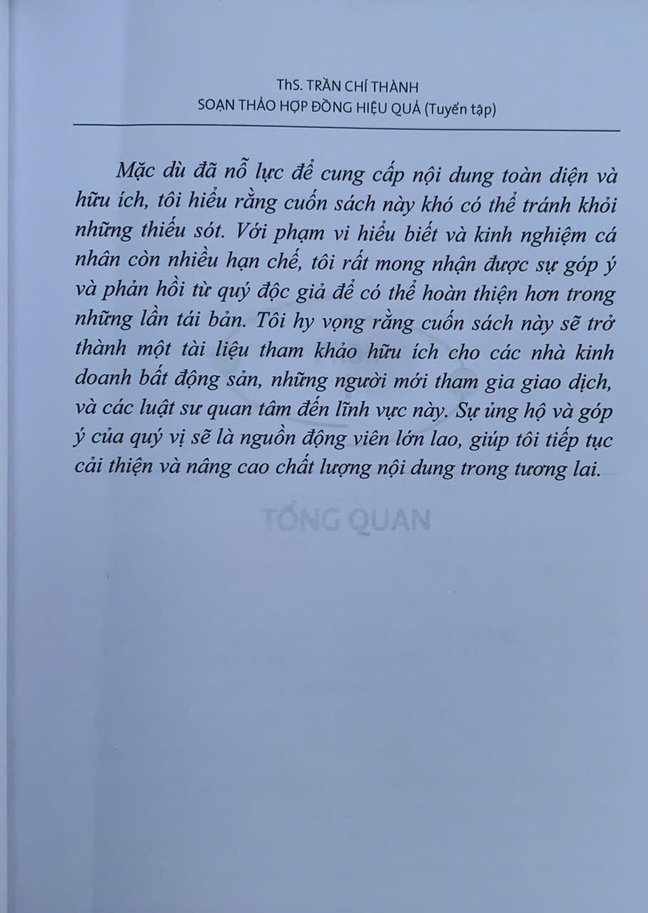 Mặc dù đã nỗ lực để cung cấp nội dung toàn diện và hữu ích, tôi hiểu rằng cuốn sách này khó có thể tránh khỏi những thiếu sót. Với phạm vi hiểu biết và kinh nghiệm cá nhân còn nhiều hạn chế, tôi rất mong nhận được sự góp ý và phản hồi từ quý độc giả để có thể hoàn thiện hơn trong những lần tái bản. Tôi hy vọng rằng cuốn sách này sẽ trở thành một tài liệu tham khảo hữu ích cho các nhà kinh doanh bất động sản, những người mới tham gia giao dịch, và các luật sư quan tâm đến lĩnh vực này. Sự ủng hộ và góp ý của quý vị sẽ là nguồn động viên lớn lao, giúp tôi tiếp tục cải thiện và nâng cao chất lượng nội dung trong tương lai.