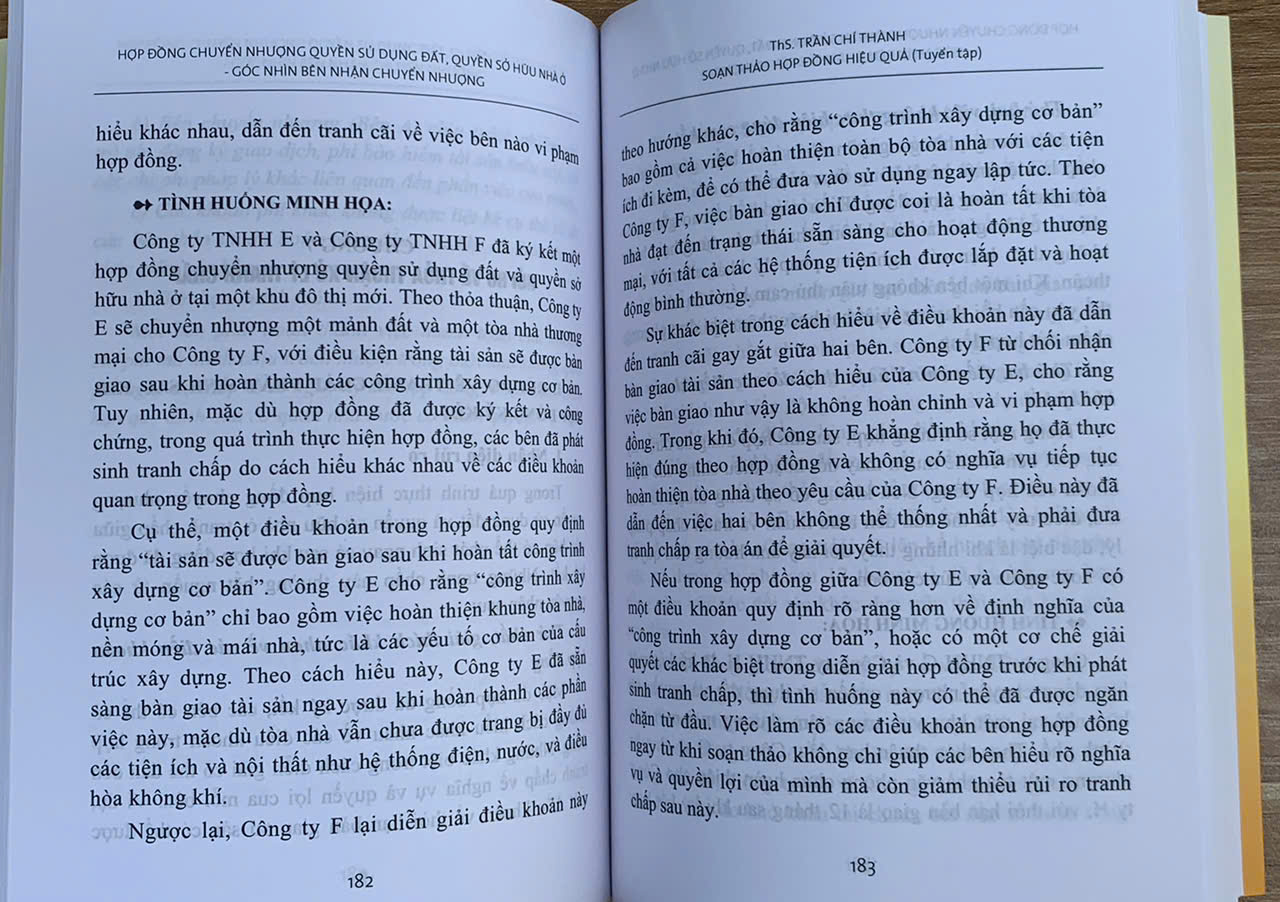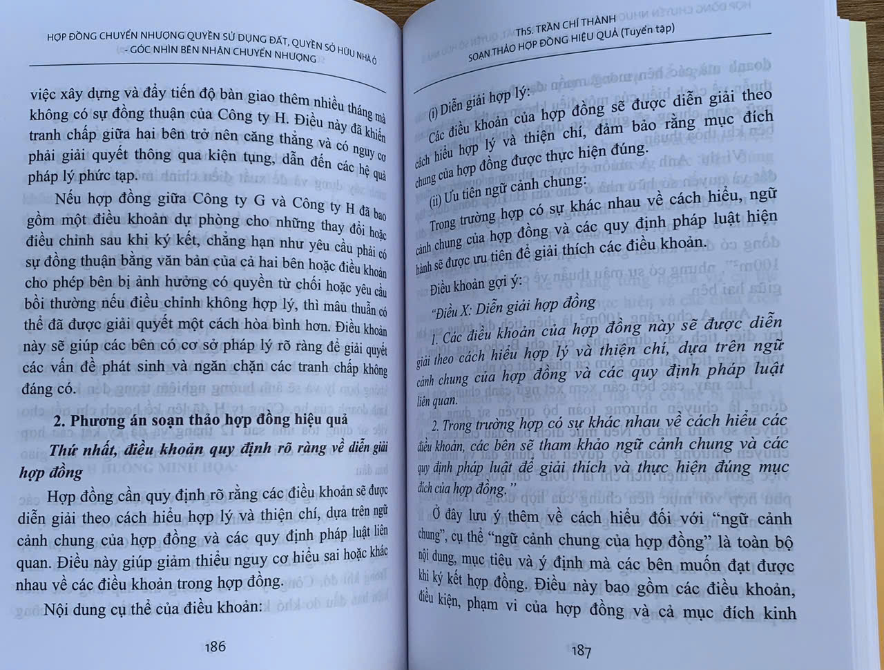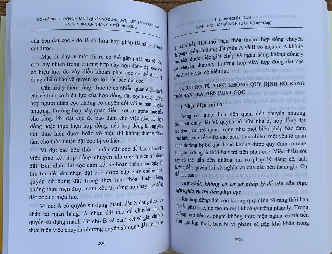 Trong bối cảnh thị trường bất động sản ngày càng phức tạp và biến động, việc chuyển nhượng quyền sử dụng đất và quyền sở hữu nhà ở luôn tiềm ẩn nhiều rủi ro pháp lý. Sự hiểu biết sâu sắc về các quy định pháp luật và khả năng soạn thảo hợp đồng chính xác là yếu tố then chốt để bảo vệ quyền lợi của các bên tham gia, đồng thời đảm bảo rằng giao dịch diễn ra suôn sẻ và hợp pháp. Một hợp đồng được soạn thảo kỹ lưỡng không chỉ là một công cụ pháp lý quan trọng mà còn là nền tảng để ngăn ngừa rủi ro và bảo vệ quyền lợi của người nhận chuyển nhượng. n sự mỗi nối thành sign tôn ba Cuốn sách này là một phần trong tuyển tập “Soạn thảo hợp đồng hiệu quả”, mỗi tập sẽ phân tích sâu về một loại hợp đồng cụ thể nhằm mang lại cho người đọc cái nhìn toàn diện và chi tiết nhất. Tập đầu tiên, với tiêu đề “Hợp đồng chuyển nhượng quyền sử dụng đất, quyền sở hữu nhà ở - góc nhìn bên nhận chuyển nhượng”, đi sâu vào việc nhận diện và phân tích các rủi ro pháp lý phổ biến trong quá trình chuyển nhượng. Thông qua việc cung cấp các giải pháp soạn thảo cụ thế, cuốn sách hướng đến việc giúp người đọc phòng ngừa rủi ro và bảo vệ quyền lợi của mình một cách hiệu quả.