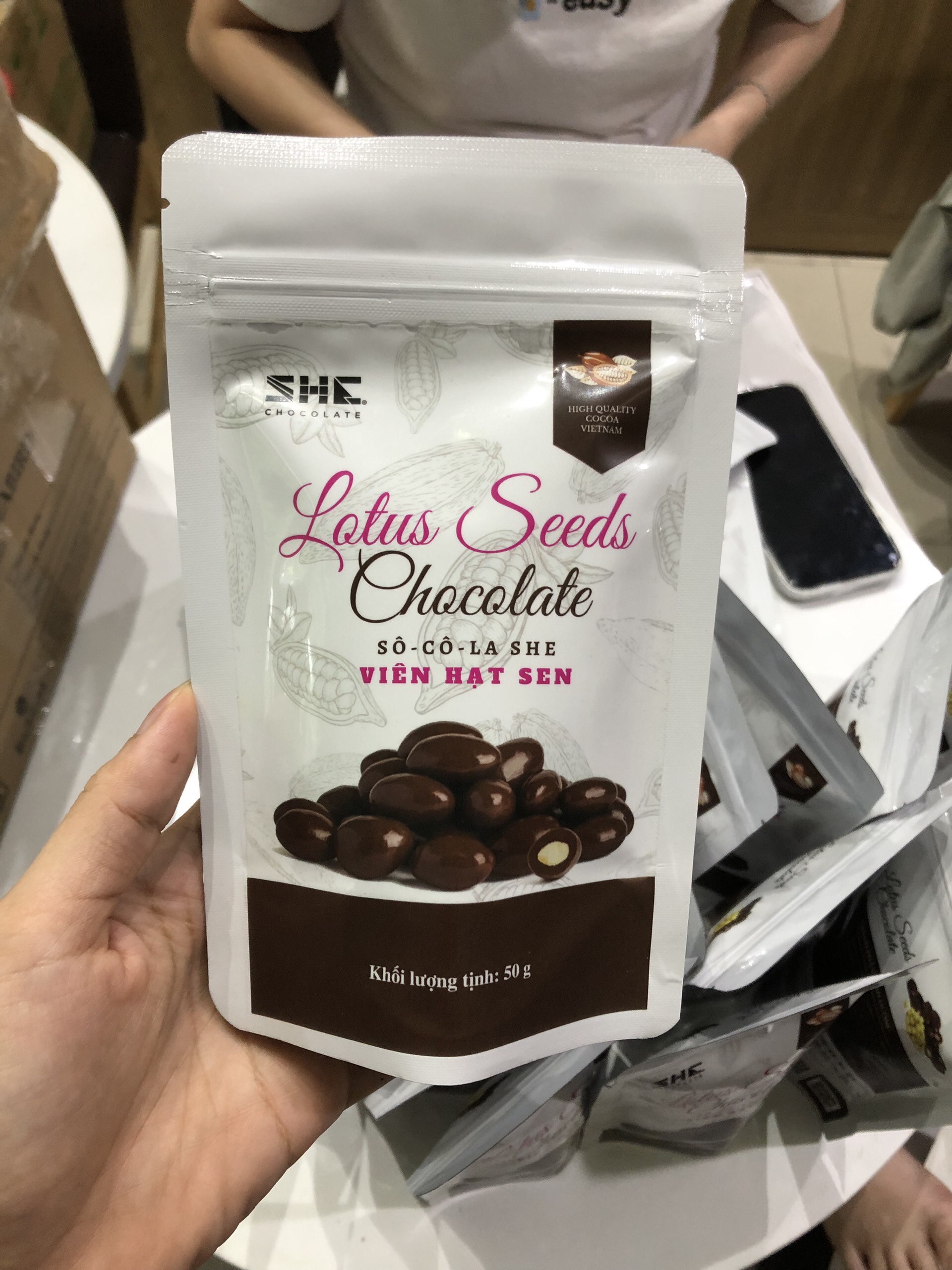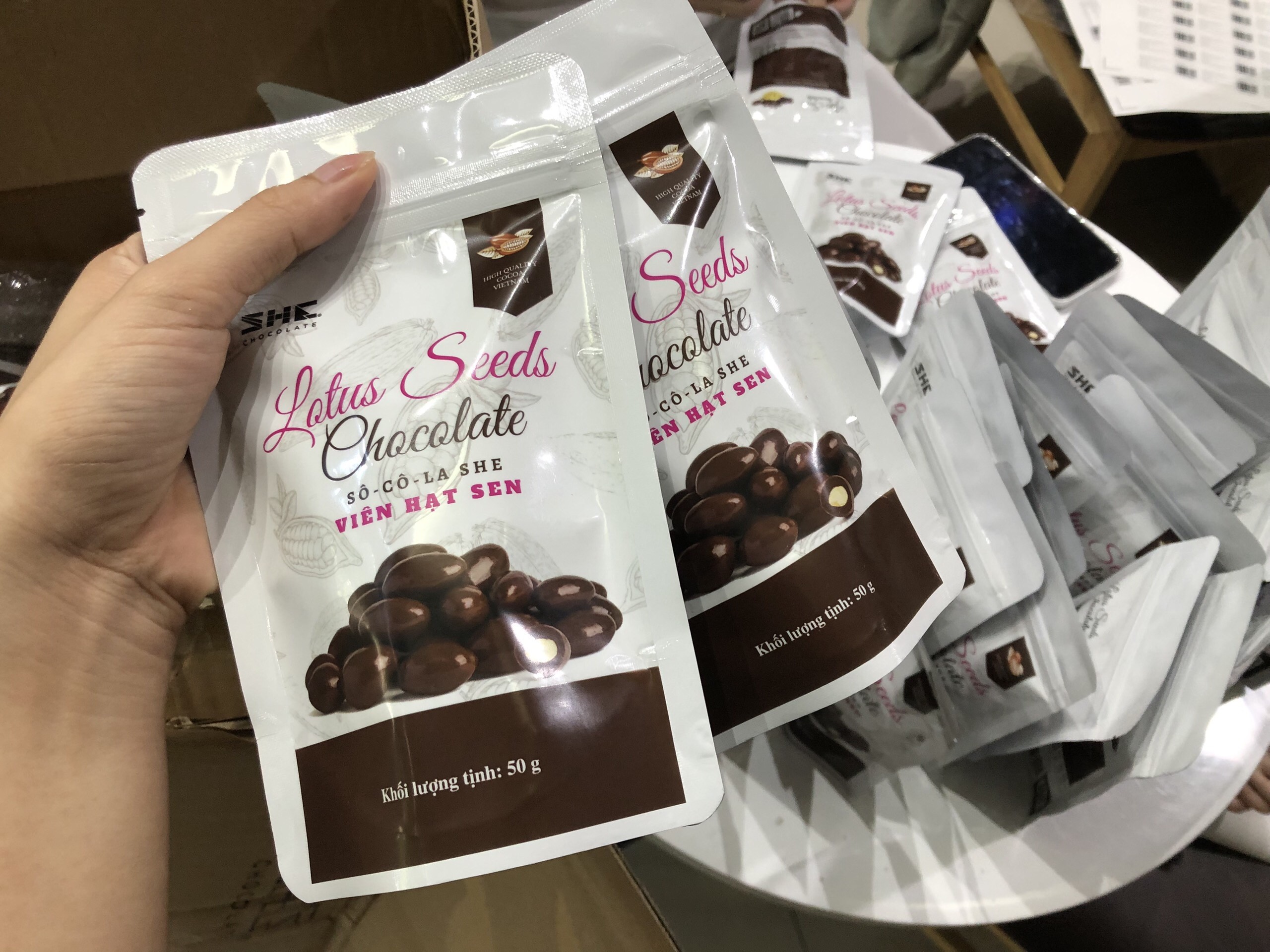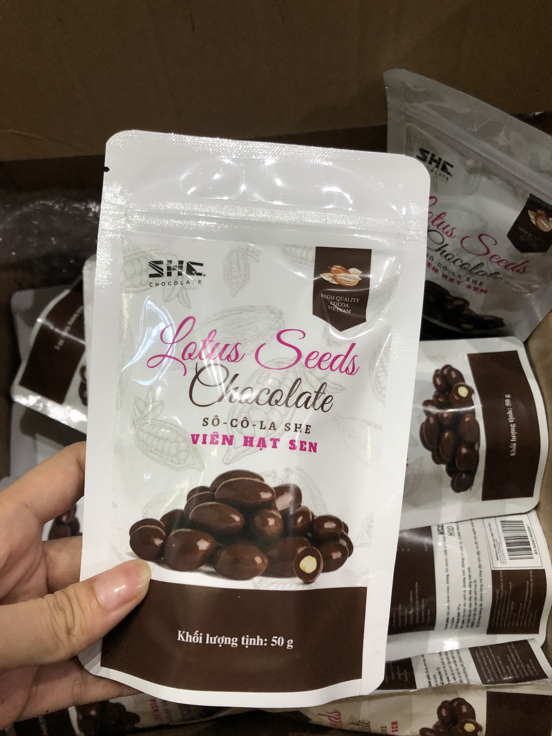 ✨Socola viên Hạt sen - túi 50g -SHE Chocolate - Bổ sung năng lượng, đa dạng vị giác. Quà tặng sức khỏe, quà tặng người thân, dịp lễ, thích hợp ăn vặt