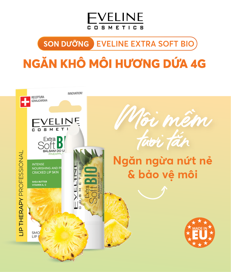 ✨ Son dưỡng Eveline Extrasoft Bio ngăn khô môi hương dứa 4g