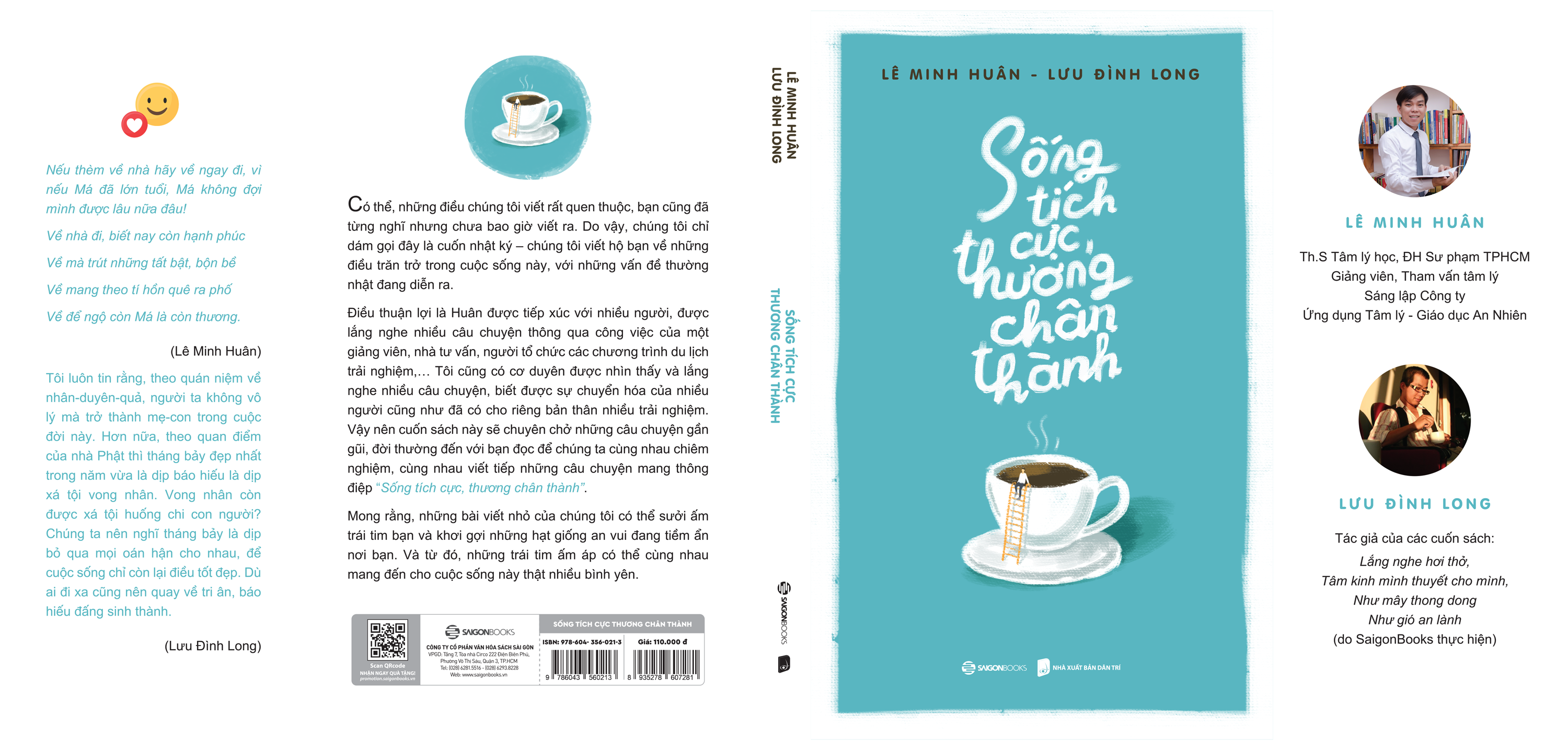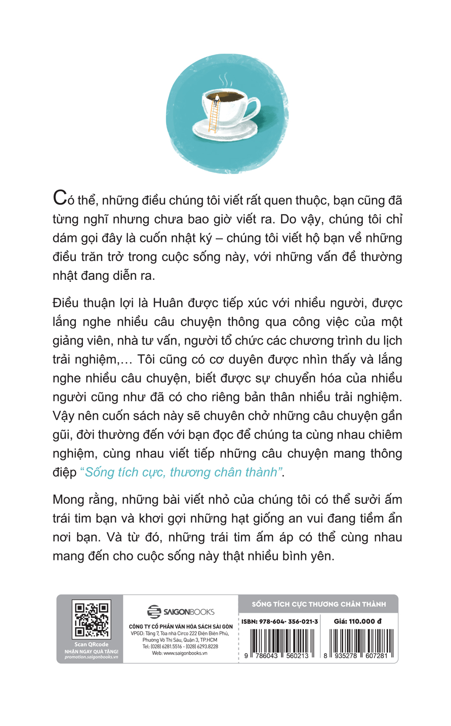 Vốn tác giả Lê Minh Huân có cơ hội được tiếp xúc với nhiều người, được lắng nghe nhiều câu chuyện thông qua công việc của một giảng viên, nhà tư vấn, người tổ chức các chương trình du lịch trải nghiệm… nên những câu chuyện của anh rất thực, và rất đời. Trong khi đó, Lưu Đinh Long lại có cơ duyên được nhìn thấy và lắng nghe nhiều câu chuyện, biết được sự chuyển hóa của nhiều người cũng như đã có cho riêng bản thân nhiều trải nghiệm. Vậy nên cuốn sách này sẽ chuyên chở những câu chuyện gần gũi, đời thường đến với bạn để chúng ta cùng nhau chiêm nghiệm, cùng nhau viết tiếp những câu chuyện mang thông điệp “Sống tích cực, thương chân thành”.