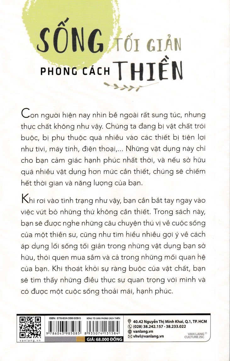 Khi rơi vào tình trạng như vậy, bạn cần bắt tay ngay vào việc vứt bỏ những thứ không cần thiết. Trong sách này, bạn sẽ được nghe những câu chuyện thú vị về cuộc sống của một thiền sư, cũng như tìm hiểu nhiều gợi ý về cách áp dụng lối sống tối giản trong những vật dụng bạn sở hữu, thói quen mua sắm và cả trong những mối quan hệ của bạn. Khi thoát khỏi sự ràng buộc của vật chất, bạn sẽ tìm thấy những điều thực sự quan trọng với mình và có được một cuộc sống thoải mái, hạnh phúc.