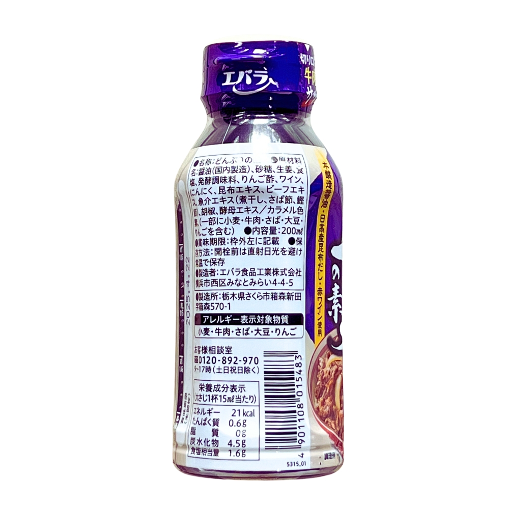SỐT CƠM BÒ XÀO EBARA Xuất xứ :Nhật Bản Thành phần: Nước tương(sản xuất tại Nhật Bản), đường , gừng , muối, mirin , giấm táo, vang, tỏi, chiết xuất tảo bẹ, chiết xuất thịt bò