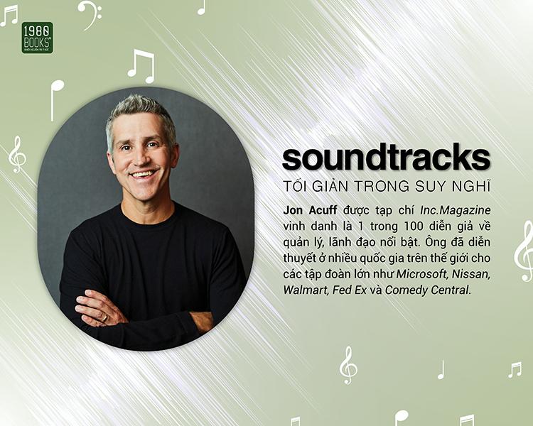 Bằng giọng văn hài hước cùng những dẫn chứng khoa học, cụ thể trong “Sountracks – Tối giản trong suy nghĩ”, tác giả Jon Acuff sẽ hướng dẫn bạn cách thay đổi bài hát – những suy nghĩ mà chúng ta lặp lại mỗi ngày, thành những giai điệu tích cực, để chúng ta có được cuộc sống dễ dàng, hạnh phúc hơn.