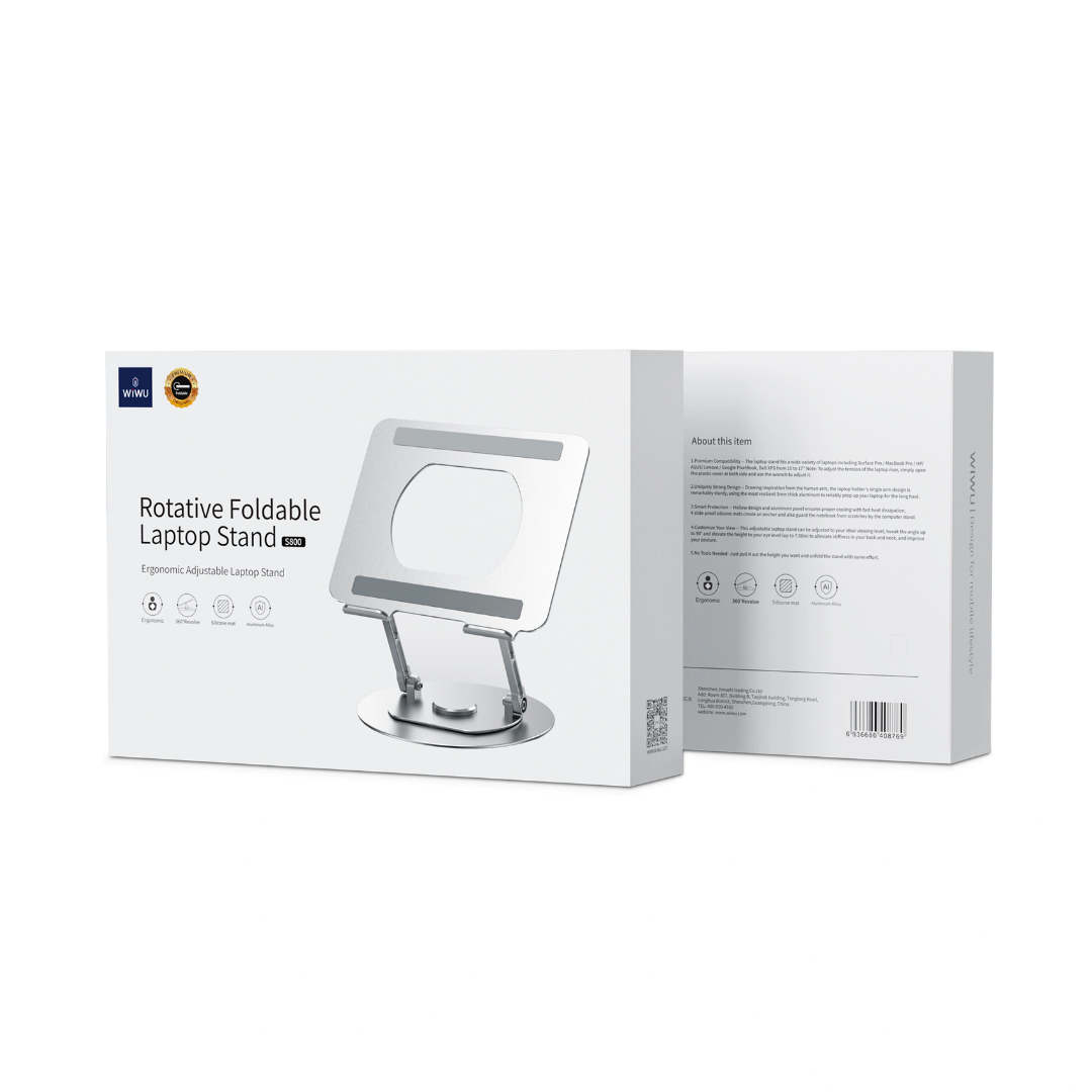Stand Nhôm MacBook Xoay WIWU S800 Thiết kế sang trọng Sản phẩm được thương hiệu WIWU sản xuất với cấu tạo được làm từ hợp kim nhôm chắc chắn giúp giữ cho chiếc máy tính
