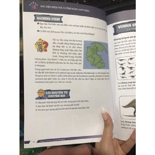 Qua cuốn Câu chuyện khủng long (6-14 tuổi), các bạn nhỏ sẽ thử sức trong vai các nhà khoa học, khảo cổ khám phá thế giới khủng long cổ đại đầy bí ẩn. Các em sẽ tìm lời giải đáp cho thắc mắc “Khủng long đến từ đâu? Khủng long đẻ con hay đẻ trứng? Vì sao khủng long biến mất?”, vì sao núi lửa phun trào, hay tại sao xảy ra động đất? Chỉ bằng những vật liệu đơn giản, dễ kiếm là bạn đã có thể thiết kế nên những công trình thú vị. Hãy không ngừng sáng tạo để có thể sáng chế những sản phẩm khoa học, kỹ thuật, công nghệ hiện đại hơn nữa nhé!