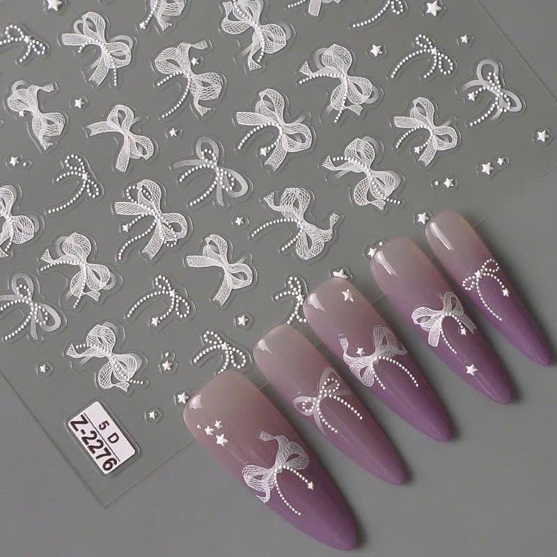 ✨Sticker 5D Nơ Ren Lụa Nổi Z2276 Siêu Hot, Hình Dán Móng Nơ Trắng CA6846 Làm Nail Trẻ Trung Nữ Women