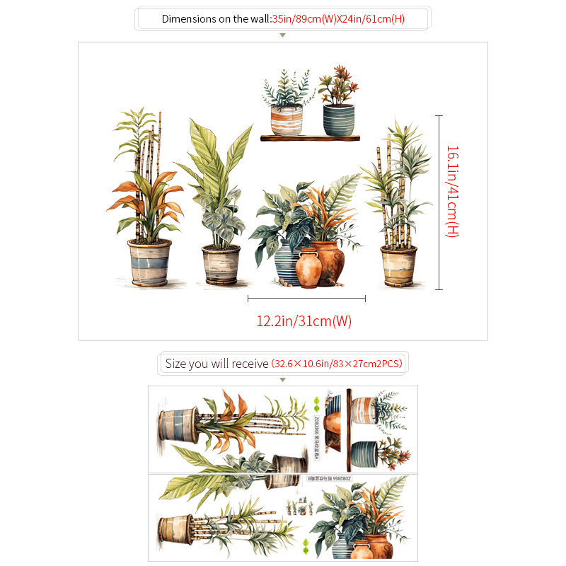 ✨Sticker Giấy Dán Tường Decal Dán tường Tranh Dán Tường Trang Trí Tường Mẫu Chậu Cây Cảnh ZDB-2866