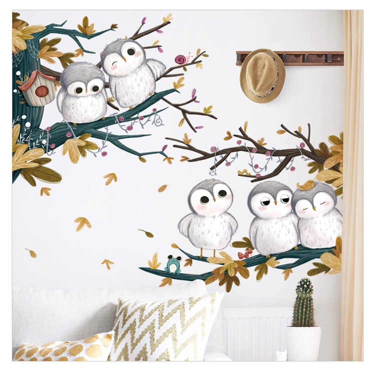 ✨Sticker Giấy Dán Tường Decal Dán tường Tranh Dán Tường Trang Trí Tường Mẫu Gia Đình Nhà Cú ZH98