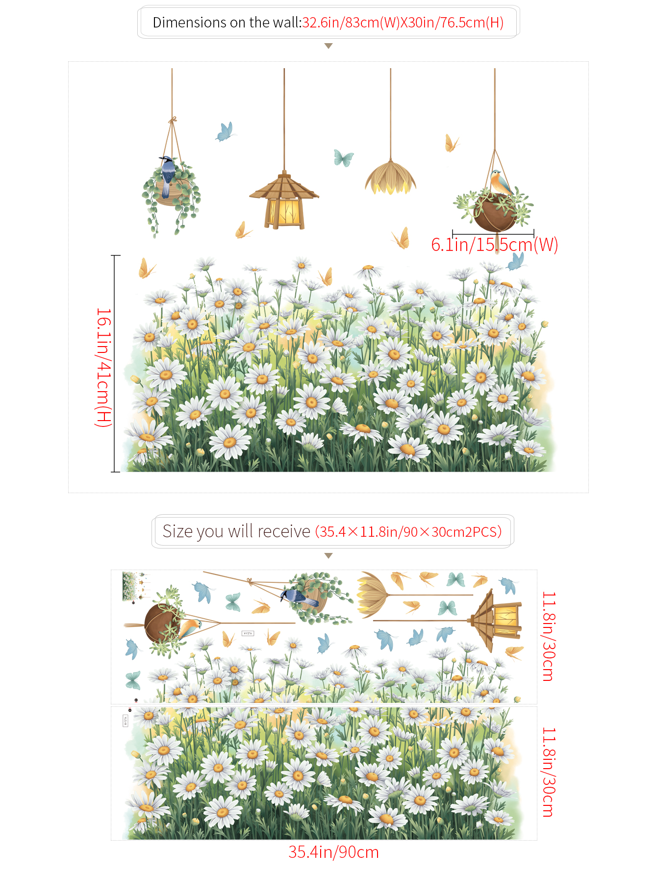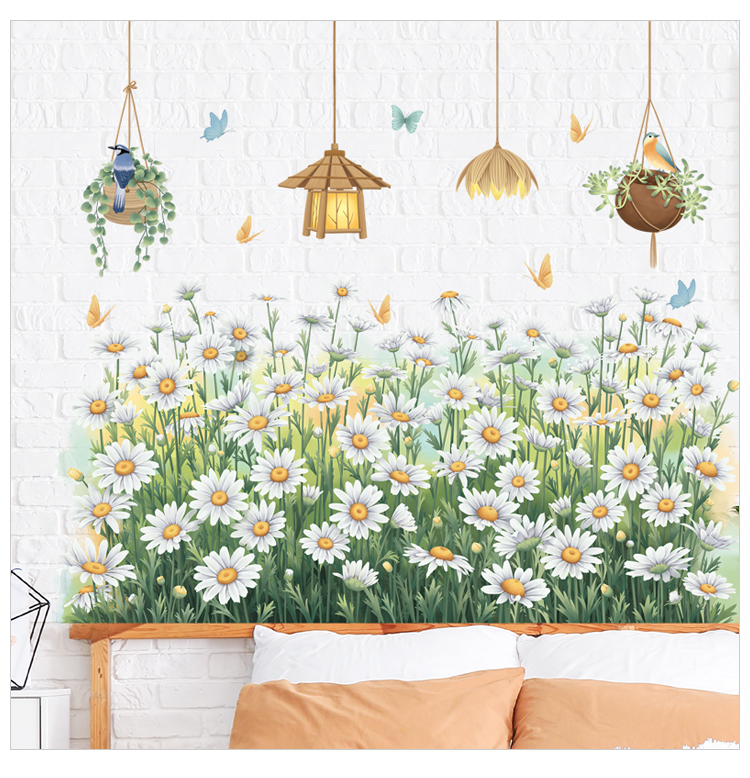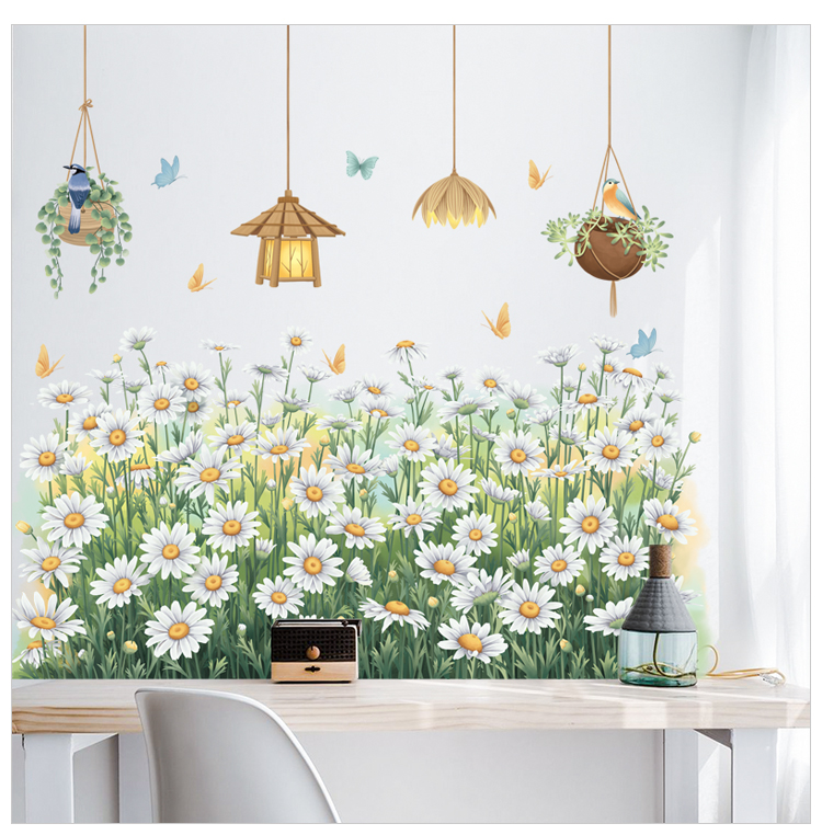 ✨Sticker Giấy Dán Tường Decal Dán tường Tranh Dán Tường Trang Trí Tường Mẫu Vườn Hoa Cúc Trắng ZDB-2593