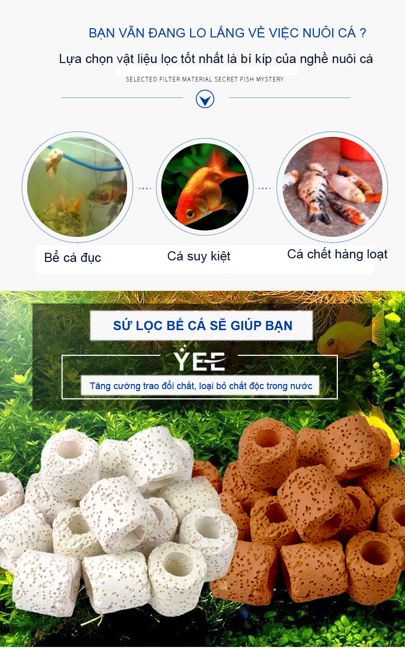 Sứ lọc bể cá là loại lọc sinh học trong 3 khâu lọc quan trọng