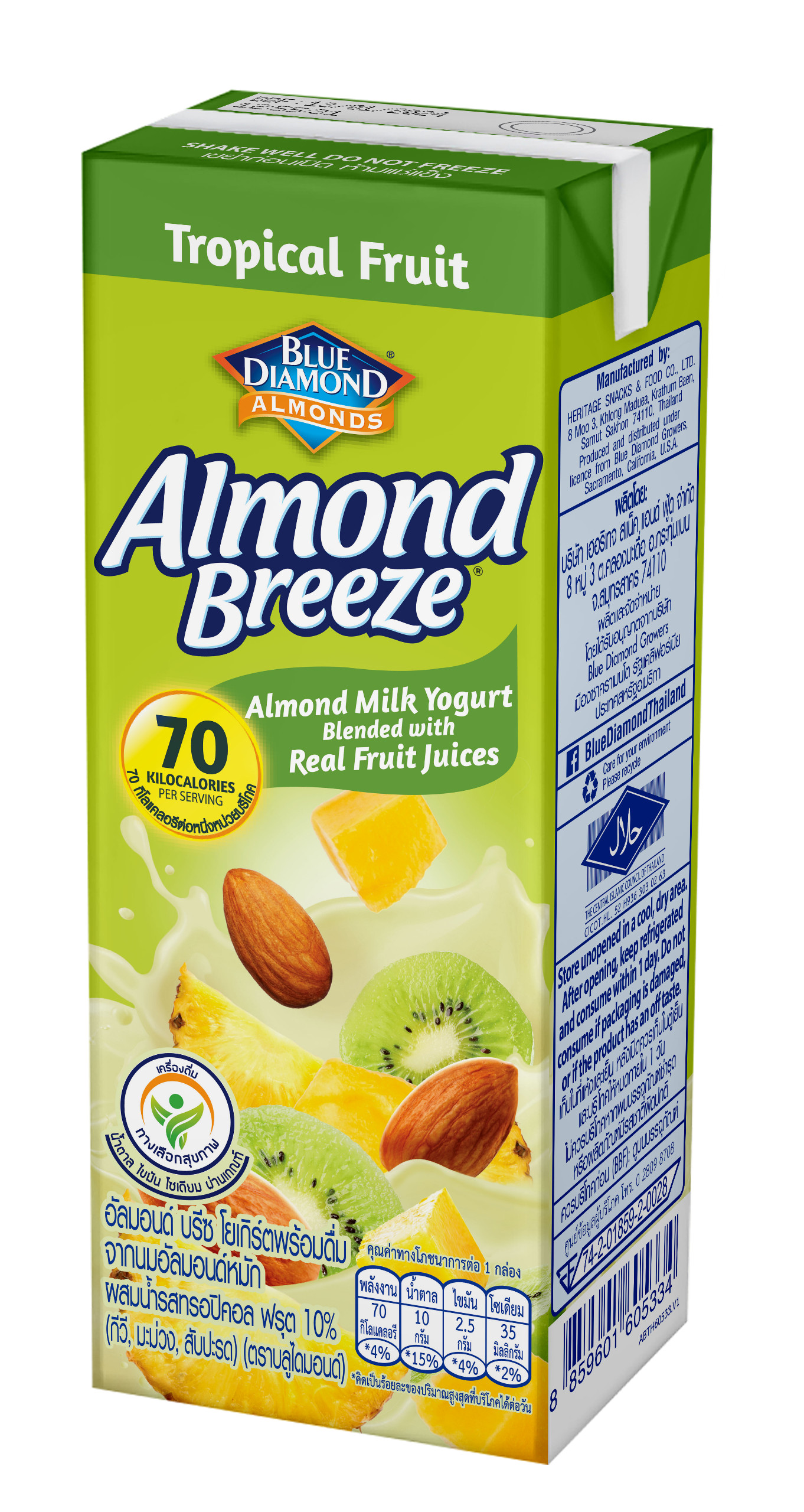 Sữa chua uống ALMOND BREEZE từ Sữa hạt hạnh nhân lên men với 10% hỗn hợp nước ép trái cây nhiệt đới (Kiwi, Xoài, Thơm) (Sản phẩm của Tập đoàn BLUE DIAMOND – Mỹ) là thức uống bổ dưỡng hàng ngày tốt cho sức khỏe.   Sản phẩm đặc biệt THÍCH HỢP VỚI KHÁCH HÀNG BỊ DỊ ỨNG VÀ KHÔNG DUNG NẠP ĐƯỢC ĐƯỜNG SỮA (Lactose);   Sản phẩm phù hợp với những người ăn chay; phụ nữ mang thai với thành phần dưỡng chất giàu Canxi và Vitamin E; không Cholesterol, không chứa các thành phần từ đậu nành và sữa, Vitamin C, A, B có hỗn hợp nước ép trái cây.   Sữa chua uống ALMOND BREEZE từ Sữa hạt hạnh nhân lên men với 10% hỗn hợp nước ép trái cây thật (Kiwi, Xoài, Thơm) là sản phẩm mới về dòng sữa chua từ sữa hạt nhập khẩu lần đầu có mặt tại Việt Nam.   Hạn sử dụng: 12 tháng kể từ ngày sản xuất.   HDSD: Bảo quản sản phẩm ở nơi khô ráo, thoáng mát.   Sản phẩm sẽ ngon hơn nếu ướp lạnh trước khi dùng.