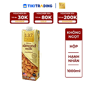 Sữa hạt 137 Degrees là thương hiệu sữa hạt dinh dưỡng số 1 tại Thái Lan, với thành phần hạt tươi nguyên chất đến 99% KHÔNG ĐƯỜNG, KHÔNG CHẤT BẢO QUẢN, KHÔNG PHA TRỘN SỮA BÒ/ SỮA ĐẬU NÀNH, dùng mật hoa dừa hữu cơ tạo vị ngọt thanh nhẹ cho sữa, nguồn hạt hạnh nhân chất lượng từ California, Hoa Kỳ. Thành phần sữa hạt hạnh nhân không đường (không ngọt) 137 degrees: 95% sữa hạt hạnh nhân, 5% chiết xuất hướng dương. (Không thêm mật hoa dừa hữu cơ, vị nhạt) Sữa hạt hạnh nhân chứa nhiều Axit folic, Omega 3, Canxi, Magie, Vitamin B, E … mang lại nhiều công dụng: ✓ Hỗ trợ ngăn ngừa các bệnh về tim mạch, đột quỵ, giảm nguy cơ ung thư ✓ Tăng cường sức khỏe não bộ, giúp giảm chứng mất trí nhớ ✓ Hỗ trợ quá trình giảm cân tự nhiên ✓ Làm chậm quá trình oxy hóa, duy trì làn da tươi sáng ✓ Giúp giảm nguy cơ sinh non, ngừa tiểu đường thai kì ✓ Hỗ trợ dinh dưỡng cho người ăn chay, tiểu đường.   137 Degrees sử dụng công nghệ đóng hộp vô trùng Tetra Pak 7 lớp (Thuỵ Điển) có thể bảo quản sữa ở nhiệt độ thường trong thời gian dài (12 tháng) mà vẫn giữ nguyên hương vị tươi ngon và dưỡng chất của sữa.   *Lưu ý: Hộp 1 Lít được thiết kế đặc biệt, khi mở nắp sẽ TỰ ĐỘNG CẮT LỚP SEAL BẠC CỦA HỘP.