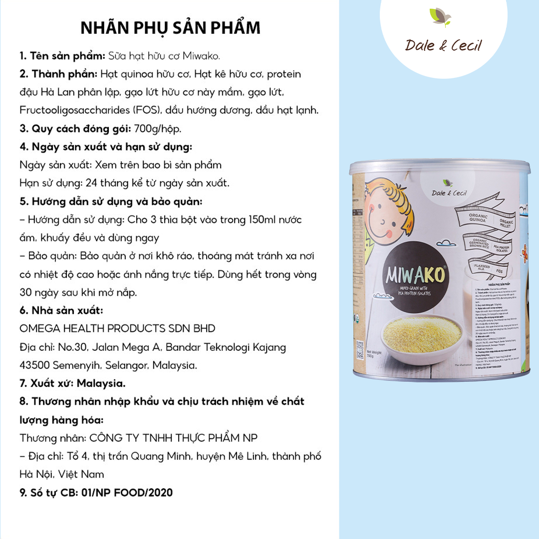 Combo 4 Hộp 400g Sữa Công Thức Hữu Cơ Miwako A+ Vị Vani, Sữa Hạt Cho Bé Phát Triển Trí Não Chiều Cao THÔNG TIN SẢN PHẨM SỮA HẠT MIWAKO A+, SỮA HỮU CƠ CHO