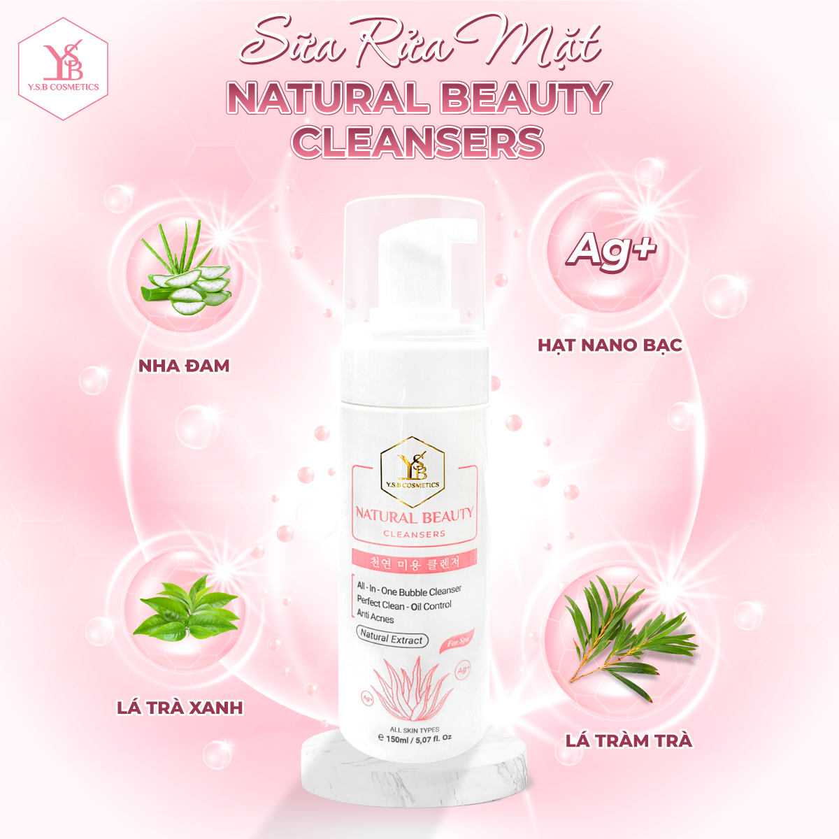 ✨Sữa rửa mặt Nha Đam Nano Bạc NATURAL BEAUTY CLEANSERS