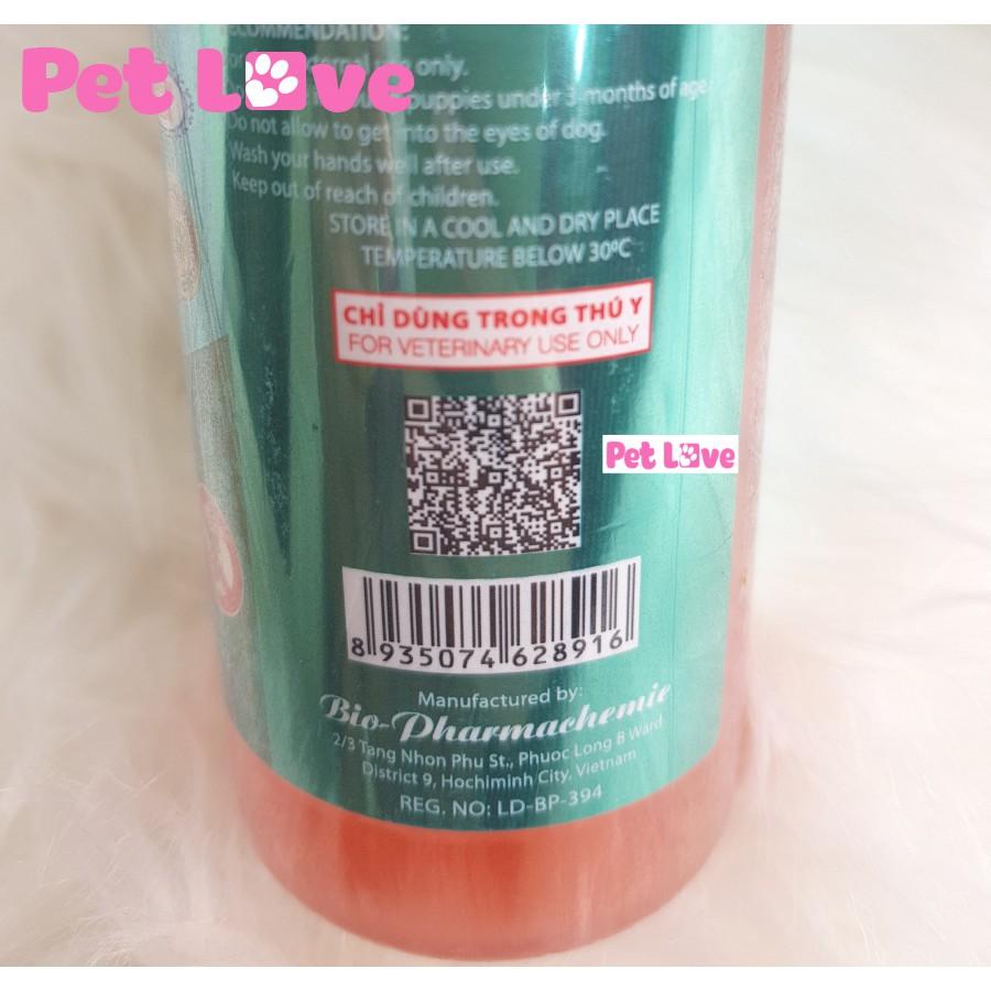 * Tiêu diệt ve rận, bọ chét trên chó. * Khử mùi hôi lông, giúp lông óng mượt. * Giữ da luôn khoẻ mạnh. * Sản phẩm của công ty Bio Pharmachemie. CÁCH SỬ DỤNG