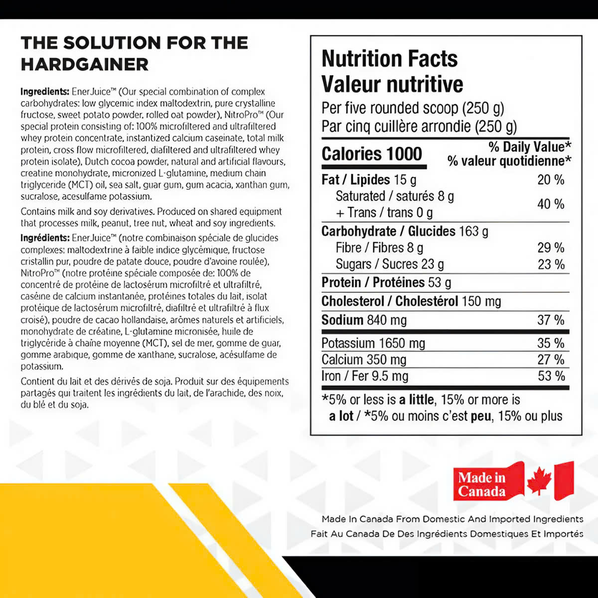 Bảng Thành Phần Sữa Tăng Cân Nitro Juice Gainer BioX