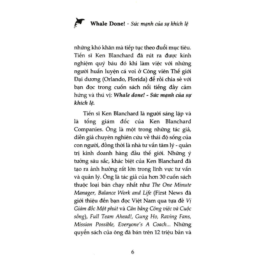 Trong cuốn sách, Ken Blanchard đã đưa ra phương pháp khích lệ những mặt tích cực để định hướng những hành vi chưa tốt của người khác. Để tăng hiệu quả công việc cũng như cải thiện các mối quan hệ, thay vì tạo ra những tình huống tiêu cực làm tinh thần người khác suy giảm, ông đã phát hiện ra phương pháp khích lệ, động viên con người phát huy khả năng, ý chí và sự tích cực trong ngôn từ, thái độ, hành vi. Hãy luôn nhớ rằng, cách nhìn và thái độ đối xử tích cực của bạn với một người sẽ có tác dụng thay đổi người đó theo hướng tích cực, như bạn mong muốn.