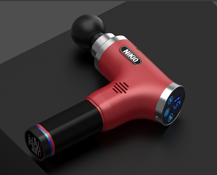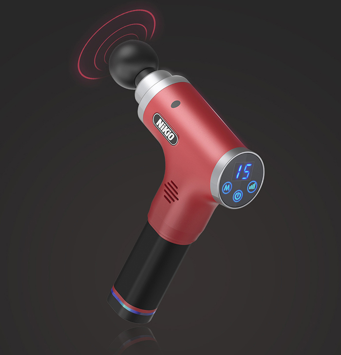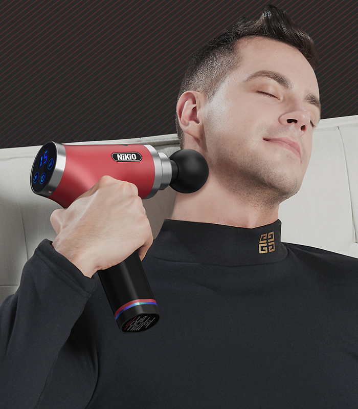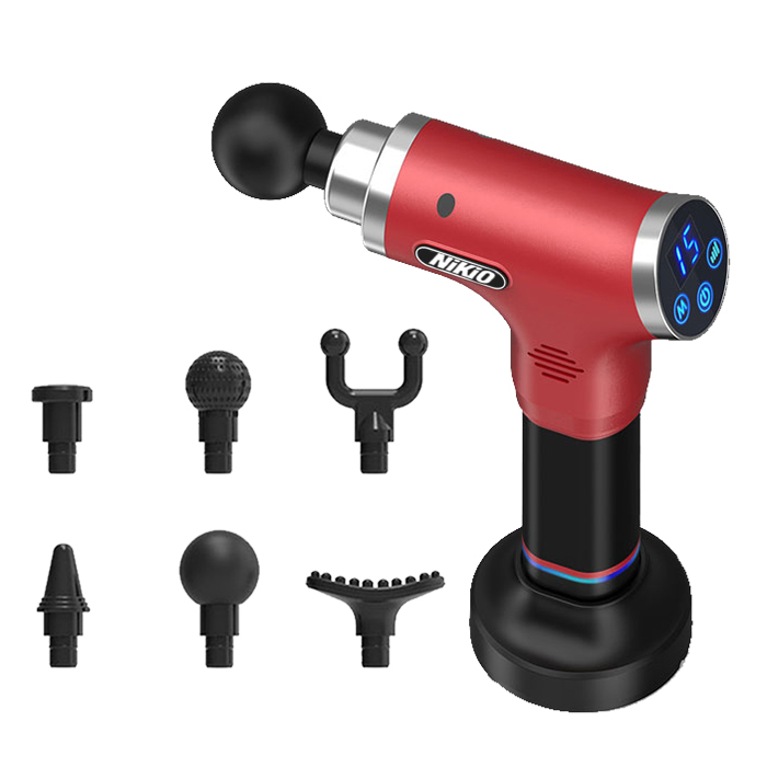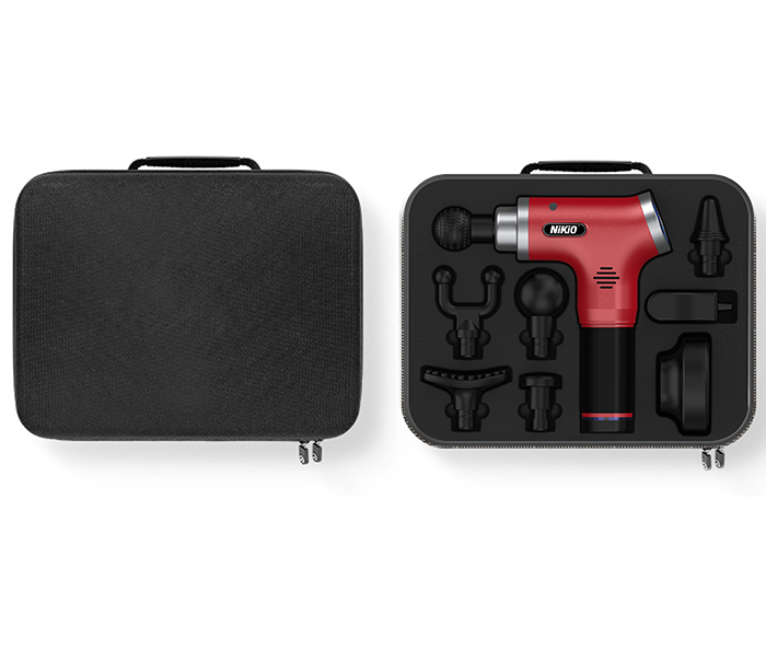 Súng massage gun cầm tay 4 đầu, 6 tốc độ Nhật Bản Nikio NK-170A - Màu đỏ đô - Đánh bay mọi cơn đau nhức mỏi, căng cơ hiệu quả Súng massage gun cầm tay