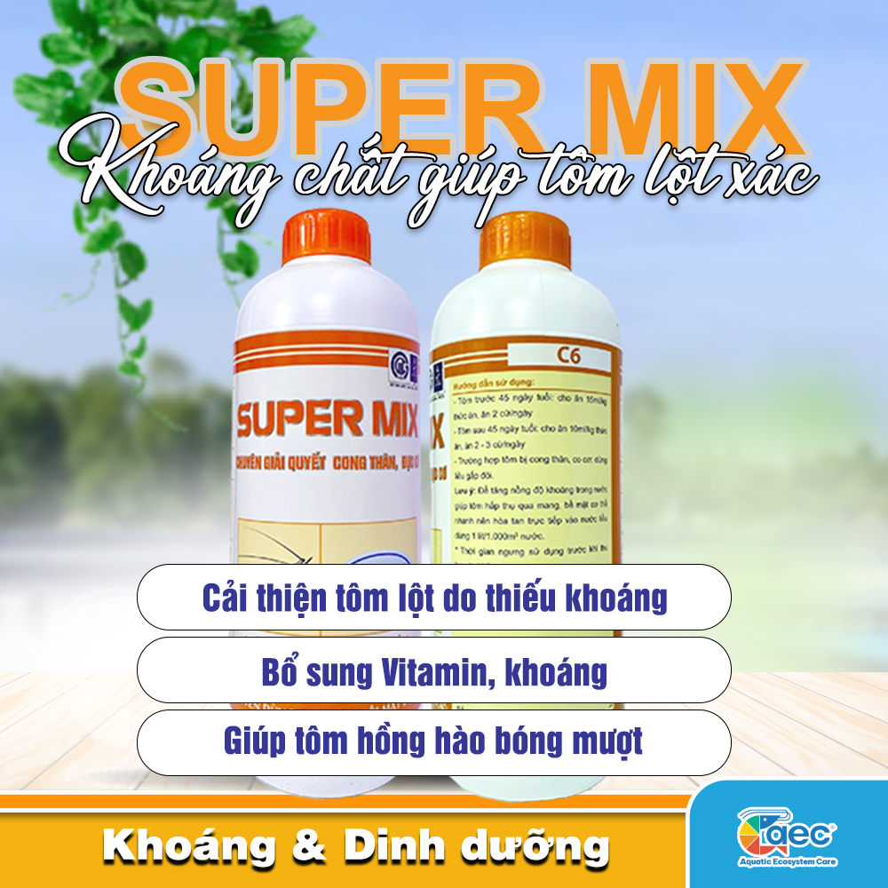 Mua tại TiktokSuper Mix là sản phẩm bổ sung khoáng chất dành cho tôm, hỗ trợ quá trình tăng trưởng, lột xác thuận lợi và giúp vỏ tôm chắc khỏe. Với công thức cân đối Canxi, Magie, Kali và các khoáng thiết yếu khác, Super Mix đặc biệt phù hợp cho các mô hình nuôi mật độ cao, môi trường nước ngọt hoặc độ mặn thấp. Công dụng nổi bật của Super Mix: