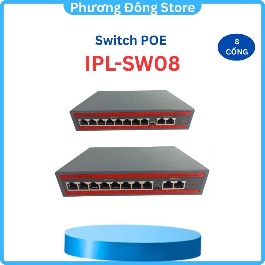 **Thông số sản phẩm: Switch IP-LINK 08 cổng IPL-SW08 - Truyền tín hiệu và nguồn được với dây 4 lõi / 8 lõi - 8 Cổng PoE 10/100 Mbps + 2 Cổng Uplink 10/100