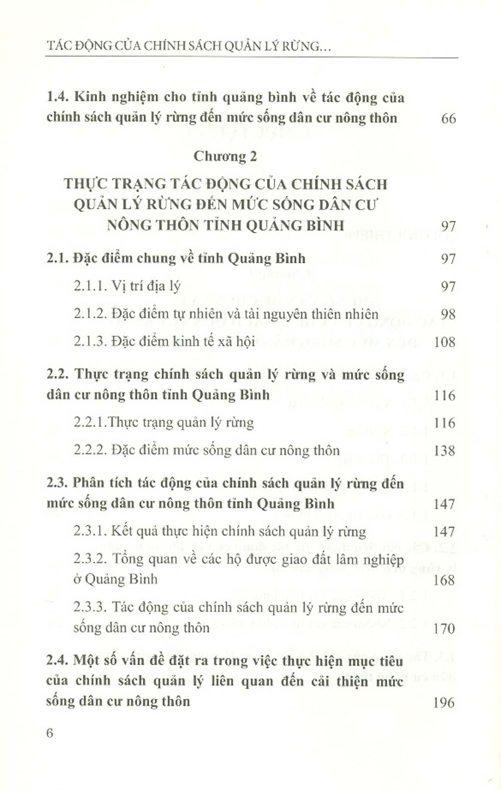Để góp phần có cái nhìn tổng quan về quản lý rừng ở Việt Nam, phân tích tính hữu hiệu của chính sách quản lý rừng liên quan và ảnh hưởng như thế nào đến mức sống dân cư, nhất là sinh kế người dân ở vùng lâm nghiệp trong quá trình triển khai đề án tái cơ cấu ngành, hướng đến mục tiêu phát triển bền vững lâm nghiệp; qua đó, cung cấp cơ sở khoa học để các nhà hoạch định chính sách, các nhà quản lý có kế hoạch quản lý rừng hợp lý, tiến đến quản lý hiệu quả tài nguyên rừng gắn với nâng cao mức sống dân cư nông thôn, Nhà xuất bản Khoa học xã hội xuất bản cuốn: Tác động của chính sách quản lý rừng đến mức sống dân cư nông thôn tỉnh Quảng Bình do TS. Trần Thị Tuyết làm chủ biên. Cuốn sách là kết quả của đề tài nghiên cứu cấp Bộ cùng tên do Chủ tịch Viện Hàn lâm Khoa học xã hội Việt Nam giao cho Viện Địa lí nhân văn thực hiện.