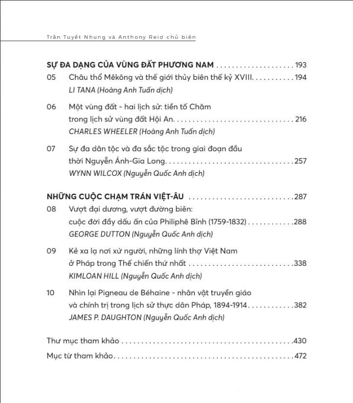 Cuốn sách Việt Nam: Lịch sử không biên giới do Trần Tuyết Nhung và Anthony Reid chủ biên, với sự tham gia của nhiều học giả trong và ngoài nước, là một công trình sử học độc đáo, vượt ra khỏi những khuôn khổ truyền thống. Thay vì chỉ nhìn Việt Nam như một quốc gia có đường biên cố định và lịch sử khép kín, tác phẩm này mở rộng tầm nhìn bằng cách khai thác các mối liên hệ xuyên biên giới – văn hóa, thương mại, di cư, và giao lưu trí thức – để tái hiện một Việt Nam năng động, luôn thay đổi và hòa nhập với khu vực cũng như thế giới. Cuốn sách gồm nhiều chương chuyên đề sâu sắc, từ thời kỳ tiền hiện đại cho đến cận đại, phản ánh sự ảnh hưởng lẫn nhau giữa Việt Nam và các nền văn hóa lân cận như Trung Hoa, Đông Nam Á, Ấn Độ và phương Tây. Thông qua các câu chuyện như hành trình của Philippé Bỉnh – người Việt đầu tiên đối thoại với châu Âu – hay các dòng di cư và truyền bá tôn giáo, tác phẩm cho thấy bản sắc Việt Nam được hình thành trong quá trình tương tác và tiếp biến không ngừng. Không chỉ dành cho giới học thuật, Việt Nam: Lịch sử không biên giới còn là nguồn tư liệu quý giá cho những ai quan tâm đến việc nhìn lại lịch sử dân tộc dưới lăng kính toàn cầu hóa và kết nối khu vực. Đây là một lời mời gọi suy ngẫm lại về "biên giới" – cả về không gian, thời gian lẫn tư duy lịch sử.