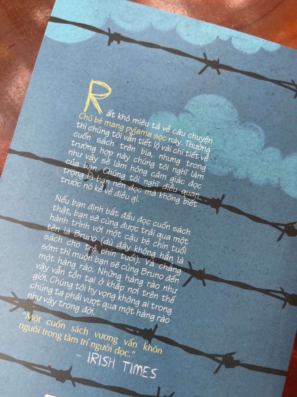 Nếu bạn định bắt đầu đọc cuốn sách thật, bạn sẽ cùng được trải qua một hành trình với một cậu bé chín tuổi tên là Bruno (dù đây không hẳn là sách cho trẻ chín tuổi). Và chẳng sớm thì muộn bạn sẽ cùng Bruno đến một hàng rào. Những hàng rào như vậy vẫn tồn tại ở khắp nơi trên thế giới. Chúng tôi hy vọng không ai trong chúng ta phải vượt qua một hàng rào như vậy trong đời.