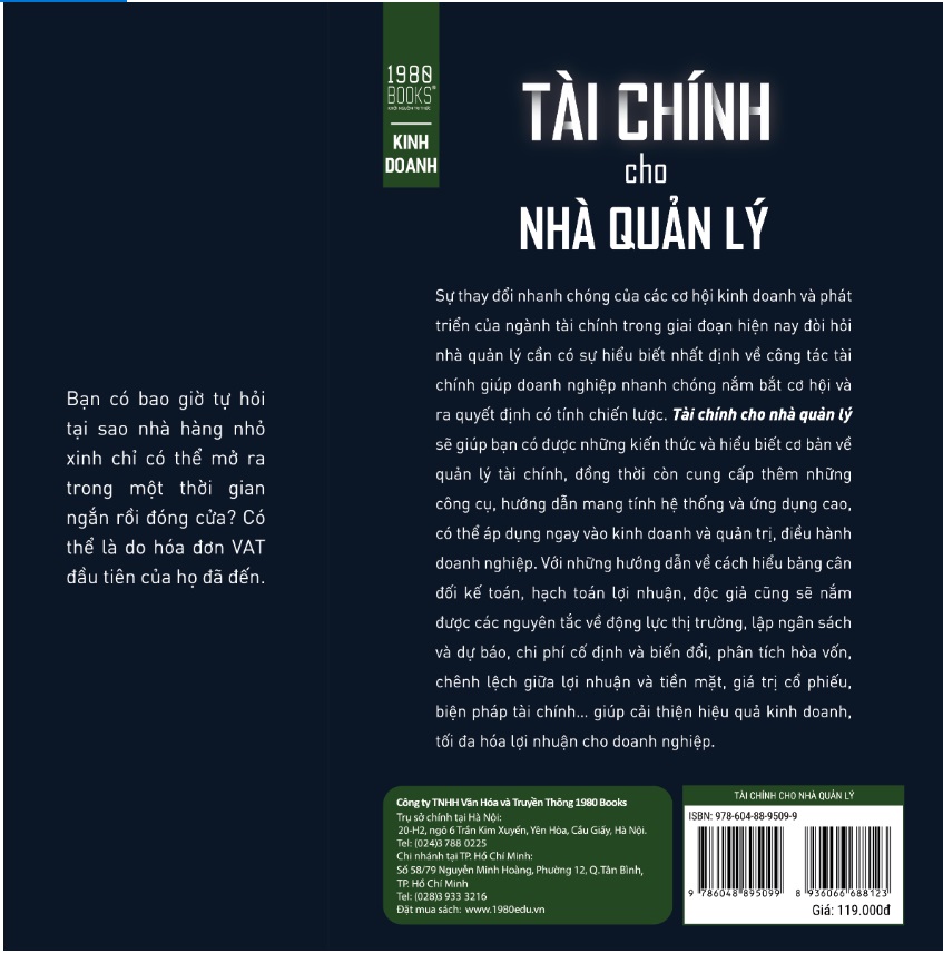 Với những hướng dẫn về cách hiểu bảng cân đối kế toán, hạch toán lợi nhuận trong “Tài chính cho nhà quản lý”, độc giả cũng sẽ nắm được các nguyên tắc về động lực thị trường, lập ngân sách và dự báo, chi phí cố định và biến đổi, phân tích hòa vốn, chênh lệch giữa lợi nhuận và tiền mặt, giá trị cổ phiếu, biện pháp tài chính… giúp cải thiện hiệu quả kinh doanh, tối đa hóa lợi nhuận cho doanh nghiệp.