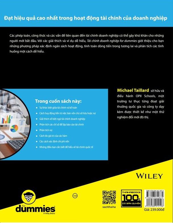 Các phép toán, công thức và các vấn đề liên quan đến tài chính doanh nghiệp có thể gây khó khăn cho những người mới bắt đầu. Với các giải thích và ví dụ dễ hiểu, Tài chính doanh nghiệp for dummies giới thiệu cho bạn những phương pháp xác định ngân sách hoạt động, tính toán dòng tiền trong tương lai và phân tích các tình huống một cách dễ hiểu.