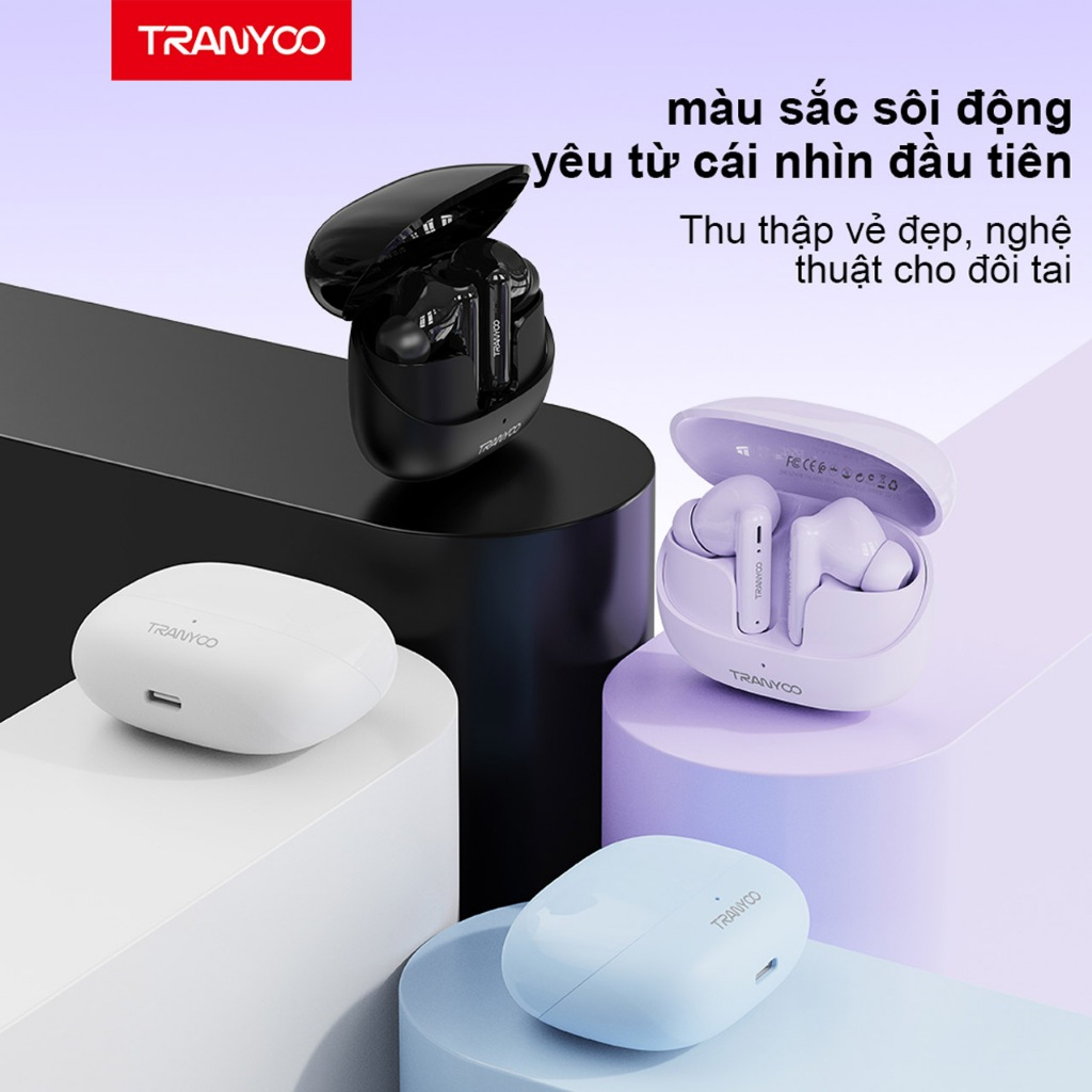Tai nghe Bluetooth 5.3 TRANYOO T-M26 Khử tiếng ồn thông minh chức năng nghe gọi chơi game pin trâu