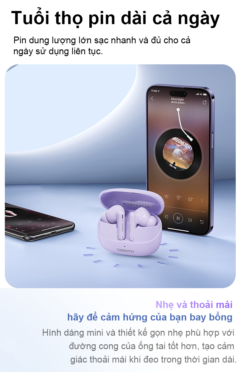 Tai nghe Bluetooth 5.3 TRANYOO T-M26, khử tiếng ồn thông minh, thiết kế đẹp, sang trọng, pin trâu -Tên sản phẩm: Tai nghe Bluetooth Tranyoo - Model: T-M26 - Chip Bluetooth: JL7023 -